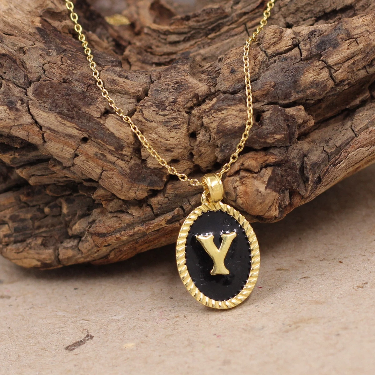 Black Enameled Initial Letter Y Gold Plated 16 2 Necklace Solid 925 Silver Ebay